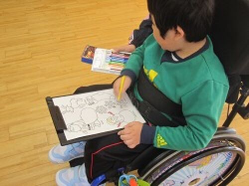 やまびこ学級合同のクリスマスパーティー。カードを作っていると、サンタクロースが登場しました。Ho ho ho! Merry Christmas!
