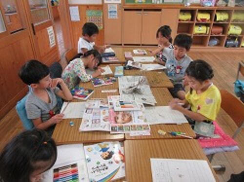 1学期に1年生が育てたアサガオ。もうすっかり処分されて持ち帰った鉢も空ですが、花が咲いたら種ができます。今日は枯れたアサガオやそこからとれる種を観察しました。じっと見て、触ってみて、匂いをかいだりして、スケッチしていました。