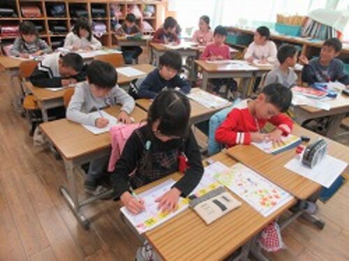 2年生は6時間目に書写の練習をしていました。静かに集中。さらに姿勢に気をつけて書いています。6時間目があるのは火曜日だけ。でも、集中力は続いていました。