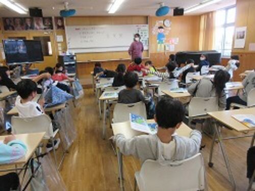 火曜日はボランティアさんの読み聞かせがあります。今朝は3年生3クラスややまびこ学級で読み聞かせがありました。この春、全ての教室の黒板にスクリーンとプロジェクターが設置されました。今日は何人かのボランティアさんが絵本をスクリーンに映してお話…