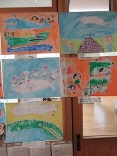 1年生がわくわく図書館や教室のわくわく文庫などから好きは本を読んで描いた「おはなしからうまれたよ」の作品が教室の掲示板と教室の前の廊下に掲示されました。どんなお話の絵なのか考えながら見るとおもしろいです。懇談会の折にご覧ください。