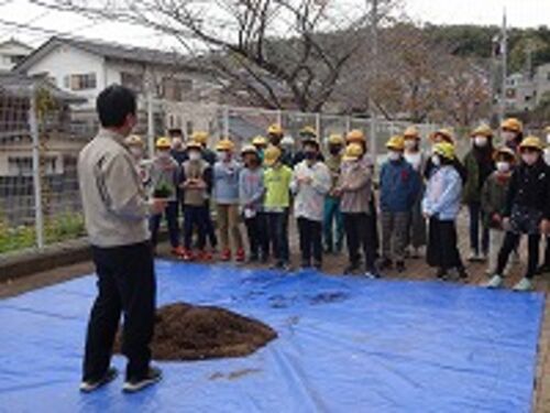 本日の5時間目…学級園の前に5年生の子どもたち… パンジーの植え替え作業が始まりました。 卒業式・入学式で会場を彩るパンジー。本校では、一人一鉢、子どもたちみんなで育てます。ポットから出したパンジーをやさしく揉んで、植木鉢へ。土の量にも気を付…