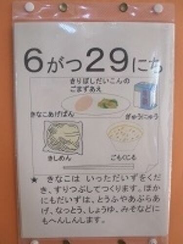 今日の給食は、きしめん、五目汁、切干し大根のごま酢和え、牛乳、きなこ揚げパンでした。 今日はきなこ揚げパンの日。 給食を見て、 「やった!今日は全部好きなやつ!」と喜んでいました。 意外な人気だったのが切干し大根のごま酢和え。 酢が入っています…