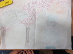 2017-11-13 5年生:図工 「見るなの座敷」を描く 5年生 5年生が読書感想画を制作中。国語の教科書に載っている「見るなの座敷」の絵です。多くの子はお話に出てくるウグイスを描こうとしていますが、なかなか難しいようです。先生が黒板に貼ってくれた写真などを参考に。