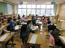2021-04-13 3年生:漢字の書き順 3年生 3年生は国語の授業で、漢字ドリルを見ながら、漢字の練習をしていました。形よく整った漢字を書くのに書き順は大切です。先生と一緒に空書きをして練習。ドリルをなぞって覚えます。