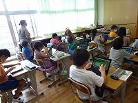 隣の3組では、ICT支援員さんと一緒にタブレットの練習。