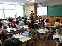4-2では…社会の授業…映像の愛知県地図が見にくかったので、暗幕を引いていました。